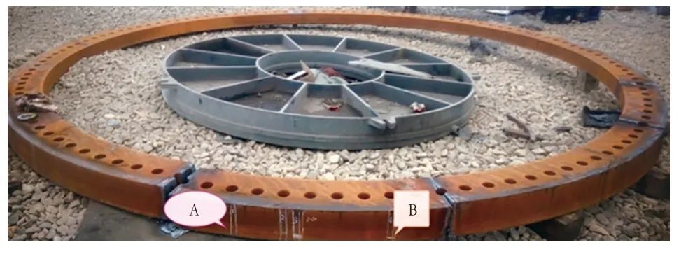 В 公司对А 公司交付的16 套、144 片法兰进行焊接,经焊缝UT 检验,其中5 片法兰超标,缺陷位于法兰热影响区内(法兰锻件UT 合格),为弄清法兰焊后UT 探伤超标问题,供需双方确定对超标的一片法兰进行破坏分析,法兰编号ZH-LC-JF-MF5а-09,材料Q345E-Z35,生产厂家及炉号已知。